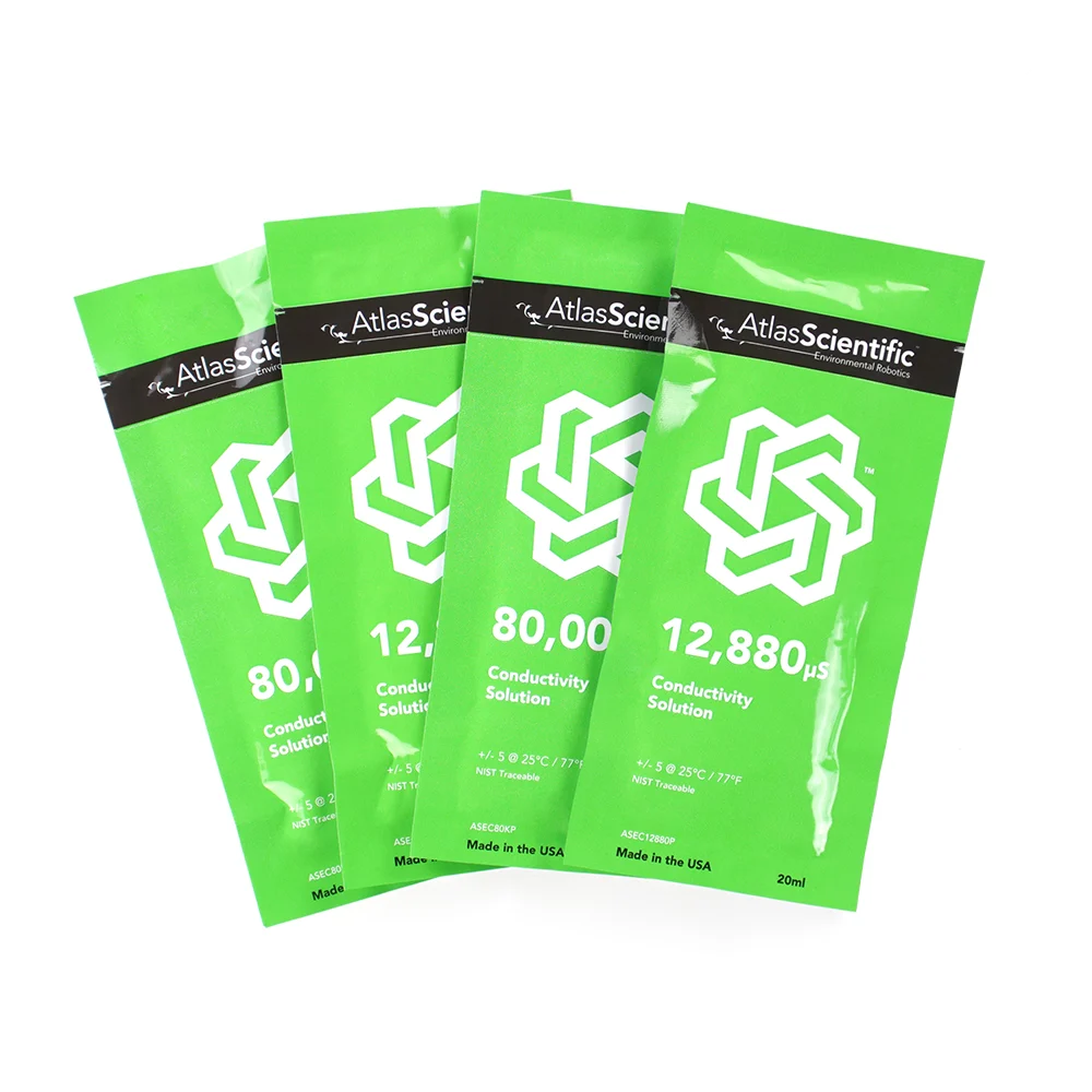 - 4x 20ml calibration solution pouches (2x 12,880µS and 2x 80,000µS)